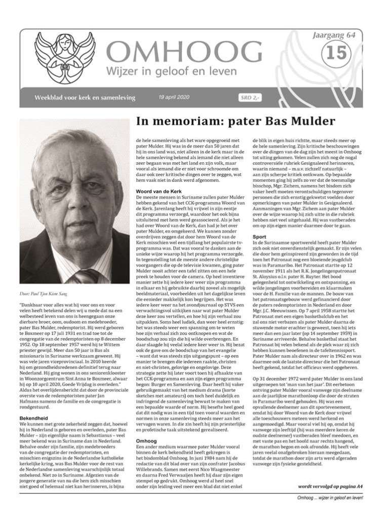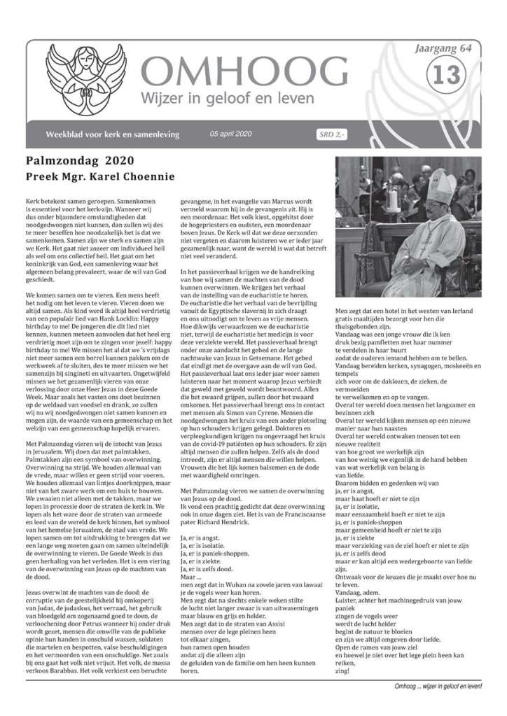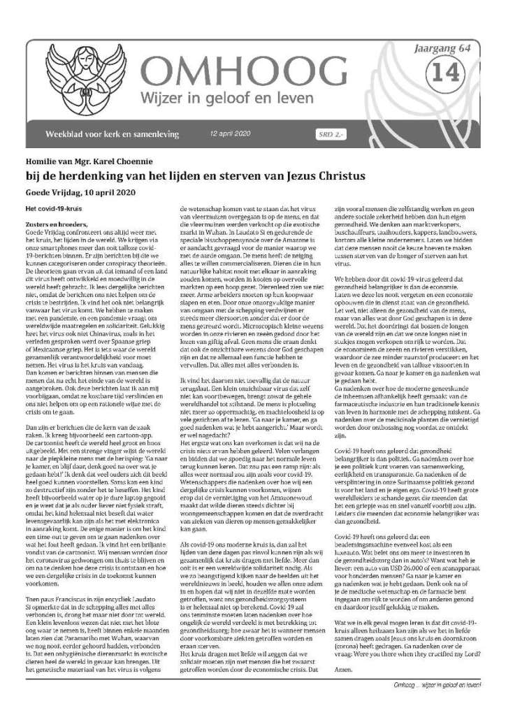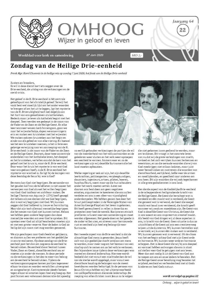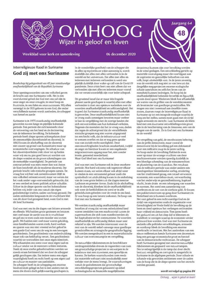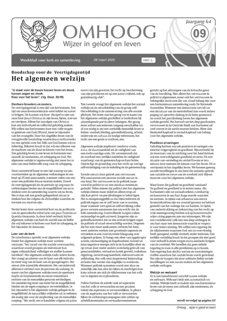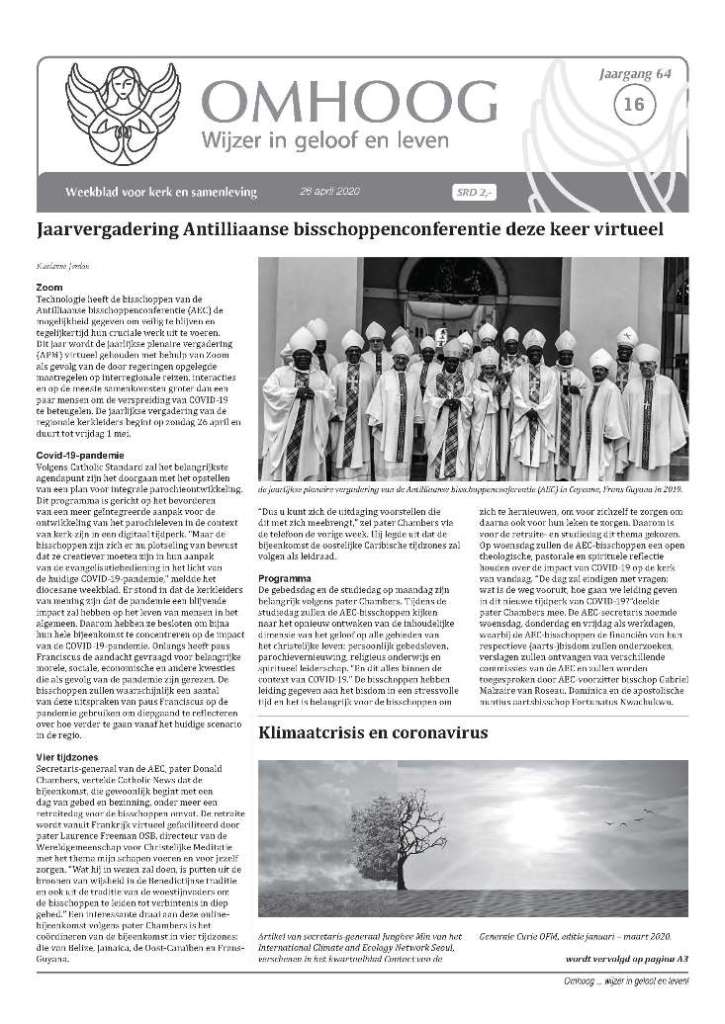 OMHOOG, het weekblad van het rooms-katholiek bisdom Paramaribo is elk weekend verkrijgbaar bij verschillende parochies en in de kerken voor SRD 2 per stuk.