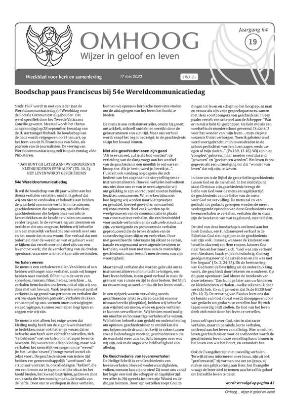 - Boodschap paus Franciscus bij 54e Wereldcommunicatiedag