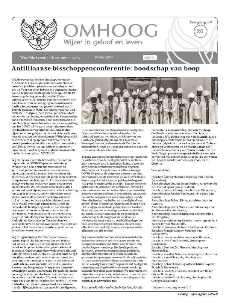 - Jaarvergadering Antilliaanse bisschoppenconferentie deze keer virtueel
